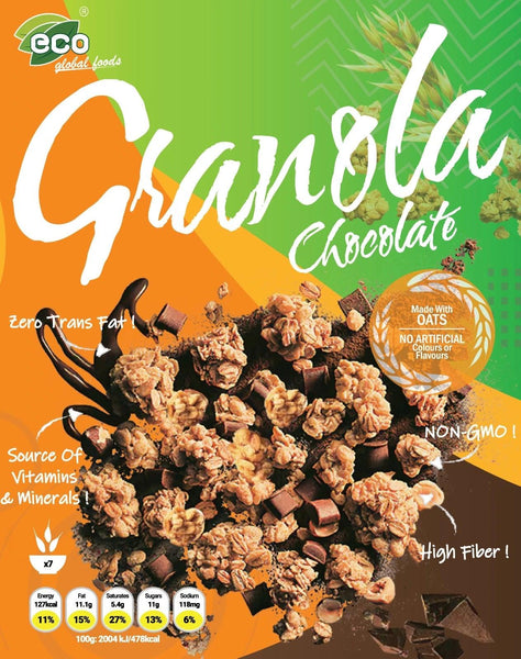 Make every bite a wholesome experience with ecoglobalfoods` Chocolate Flavored Granola—where indulgence meets nutrition!